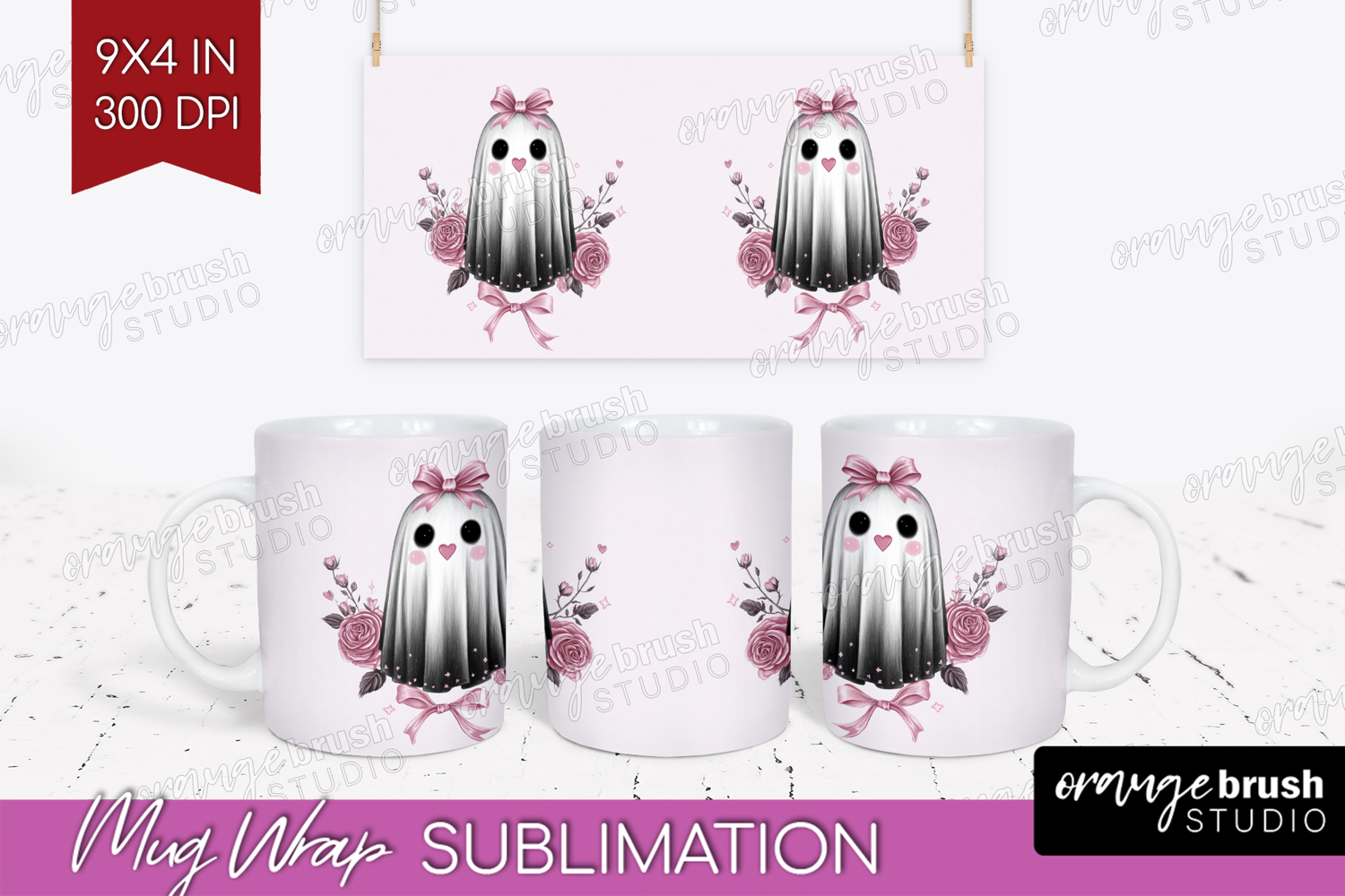 Floral Ghost Cute Mug Wrap Pink Halloween Mug PNG example image 1