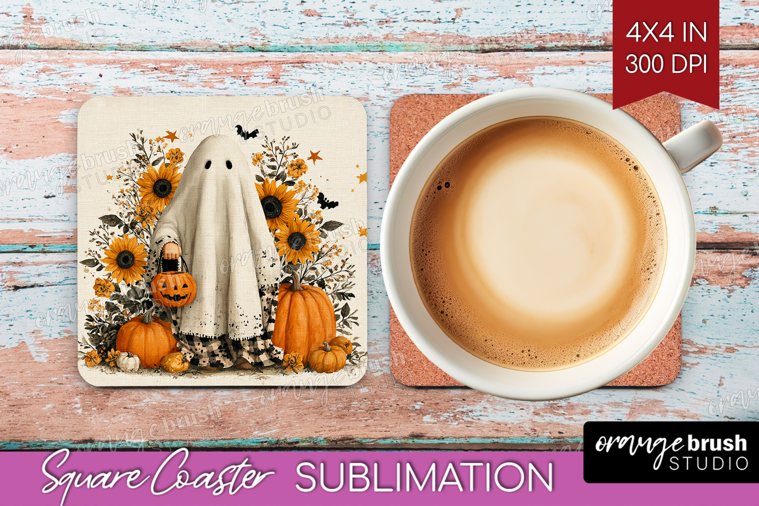 Ghost Halloween Square Coaster Spooky Season Coaster PNG example image 1
