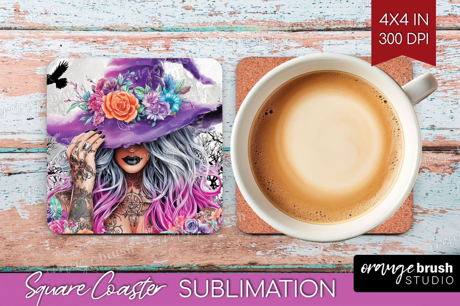 Witch Halloween Square Coaster Spooky Season Coaster PNG example image 1