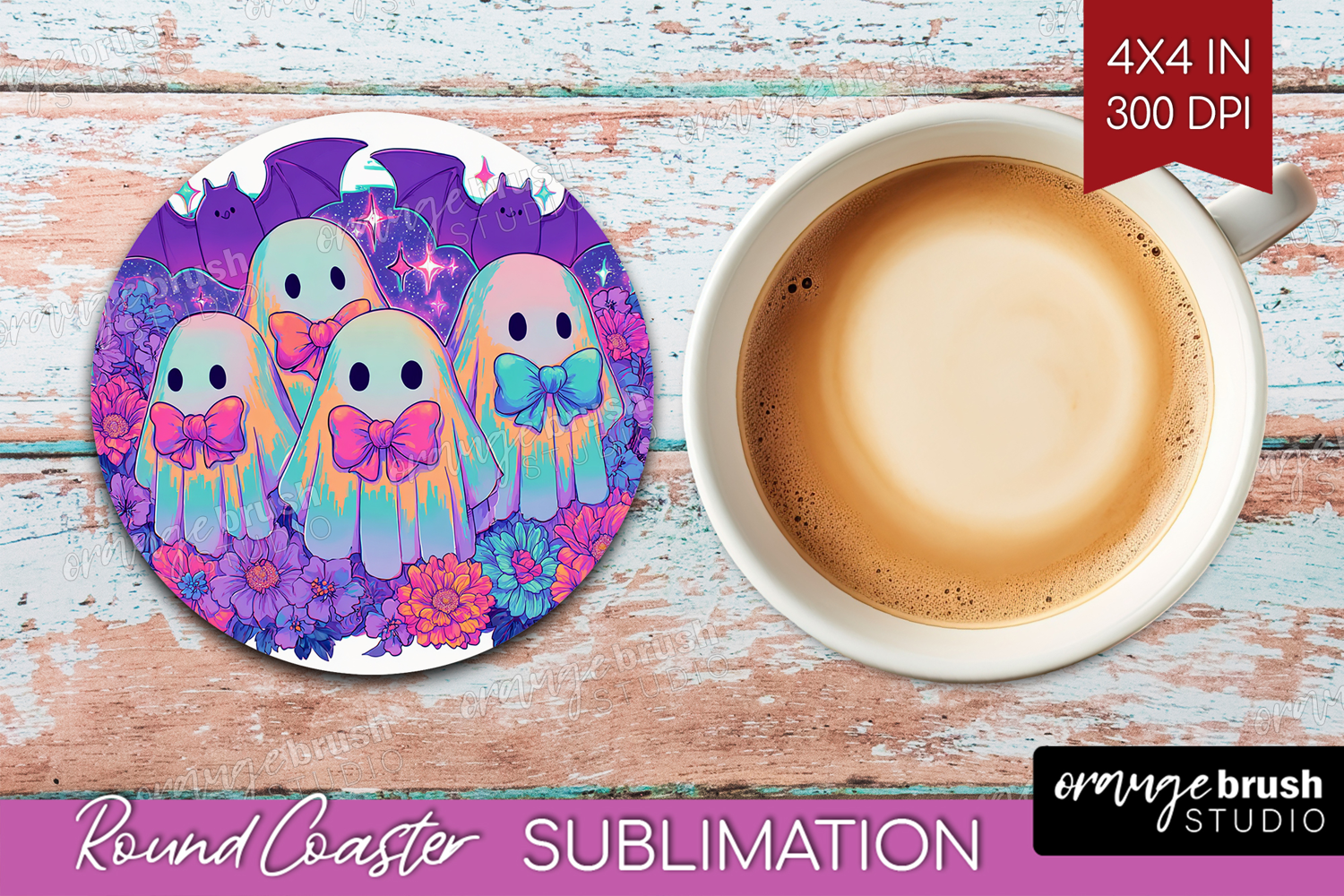 Similar Design Products to Iridescent Ghost Halloween Round Coaster Spooky Season PNG