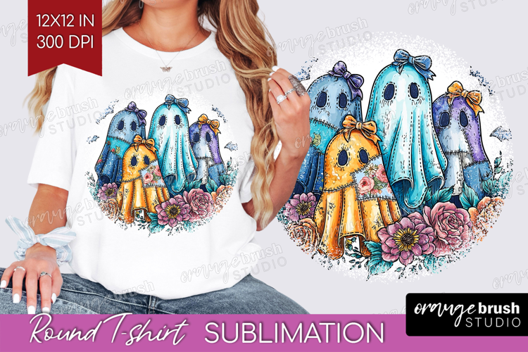 Denim Ghost Halloween Round Tshirt Background Spooky Season example image 1