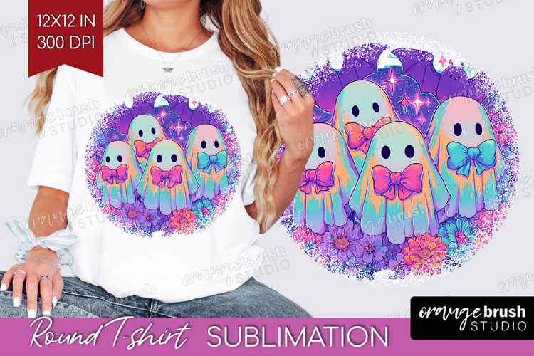 Iridescent Ghost Halloween Round Tshirt Background Spooky example image 1