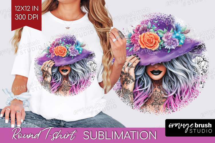 Witch Halloween Round Tshirt Background Spooky Season PNG example image 1