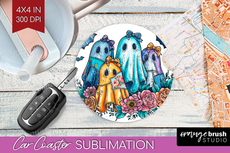 Similar Design Products to Denim Ghost Halloween Car Coaster Spooky Season Coaster PNG