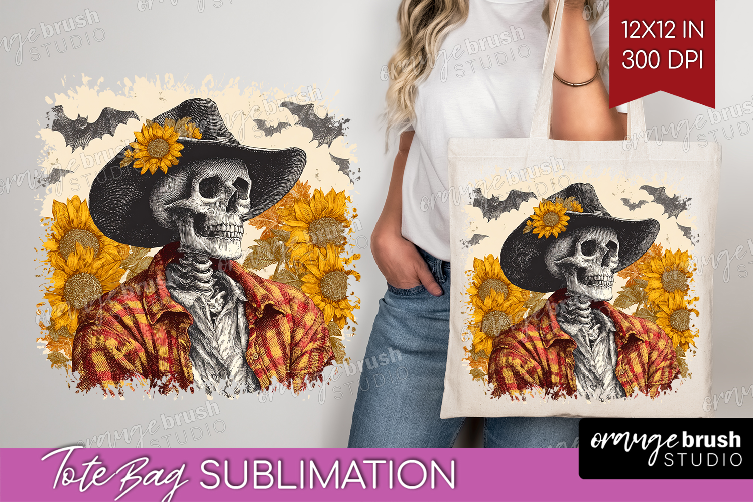 Skull Cowbow Halloween Tote Bag Spooky Season Tote Bag PNG example image 1