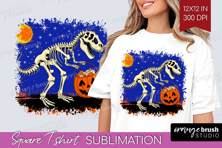 Dinosaur Halloween Square Tshirt Background Spooky Season