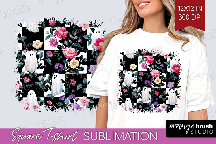 Floral Ghost Halloween Square Tshirt Background Spooky PNG example image 1
