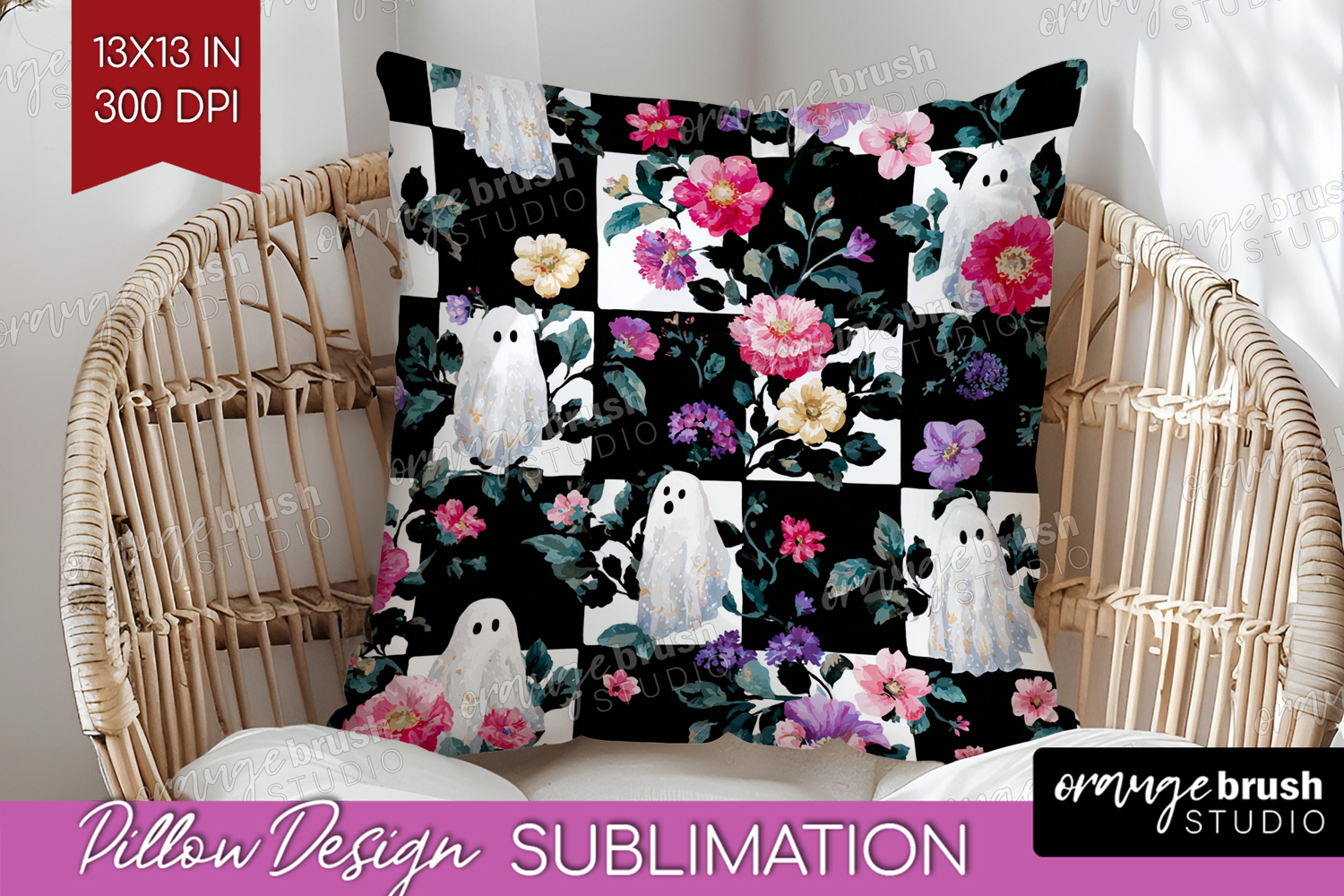 Floral Ghost Halloween Pillow Sublimation Spooky Season example image 1