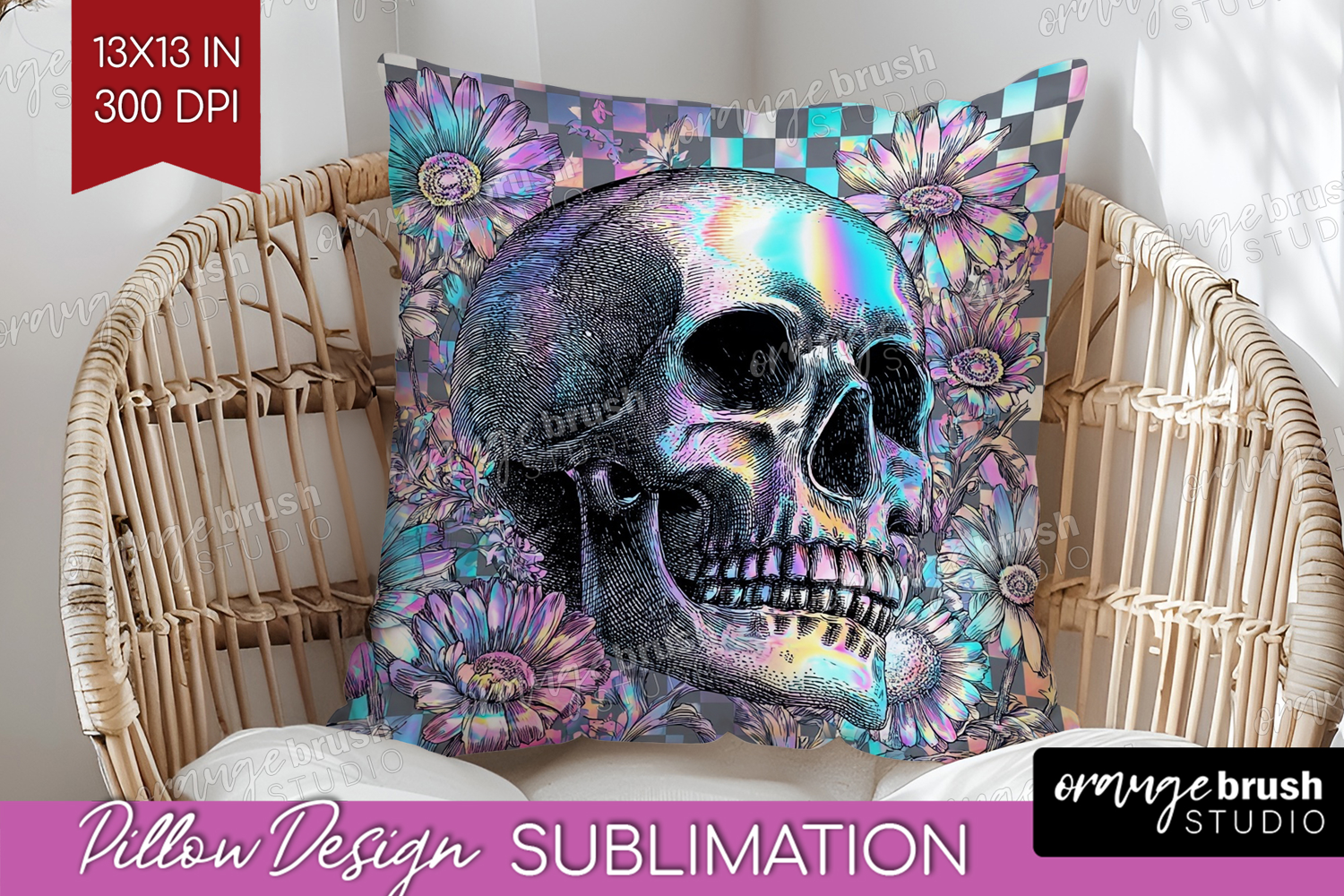 Iridescent Skull Halloween Pillow Sublimation Spooky Season