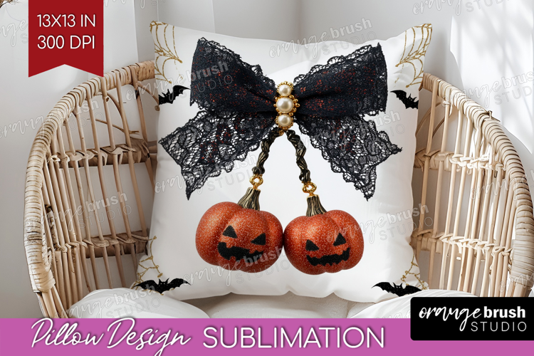 Pumpkin Bow Halloween Pillow Sublimation Spooky Season Cover example image 1