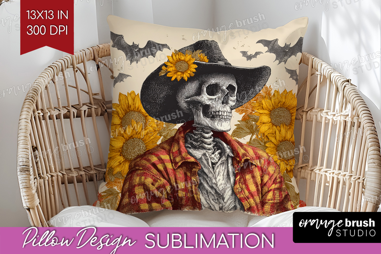 Skull Cowbow Halloween Pillow Sublimation Spooky Season