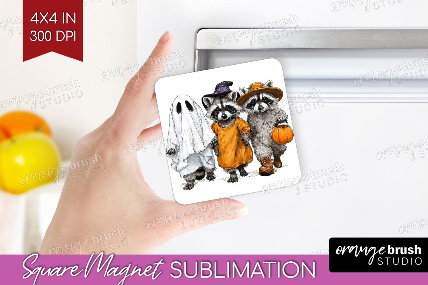 Raccoon Halloween Magnet Sublimation Spooky Season Square example image 1