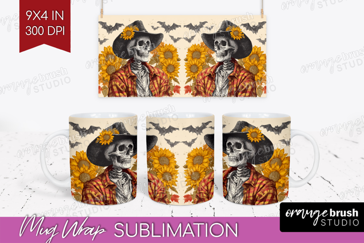 Skull Cowbow Halloween Mug Wrap Spooky Season Mug PNG example image 1