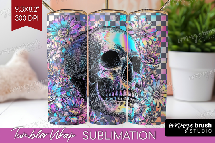 Iridescent Skull Halloween Tumbler Wrap Spooky Season PNG example image 1