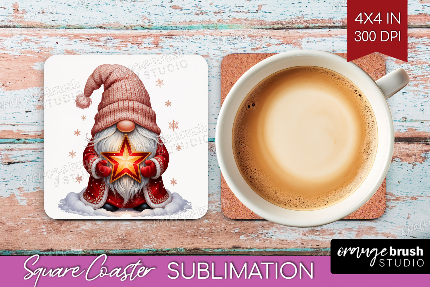 Christmas Gnome Square Coaster - Cute Gnome Coaster PNG
