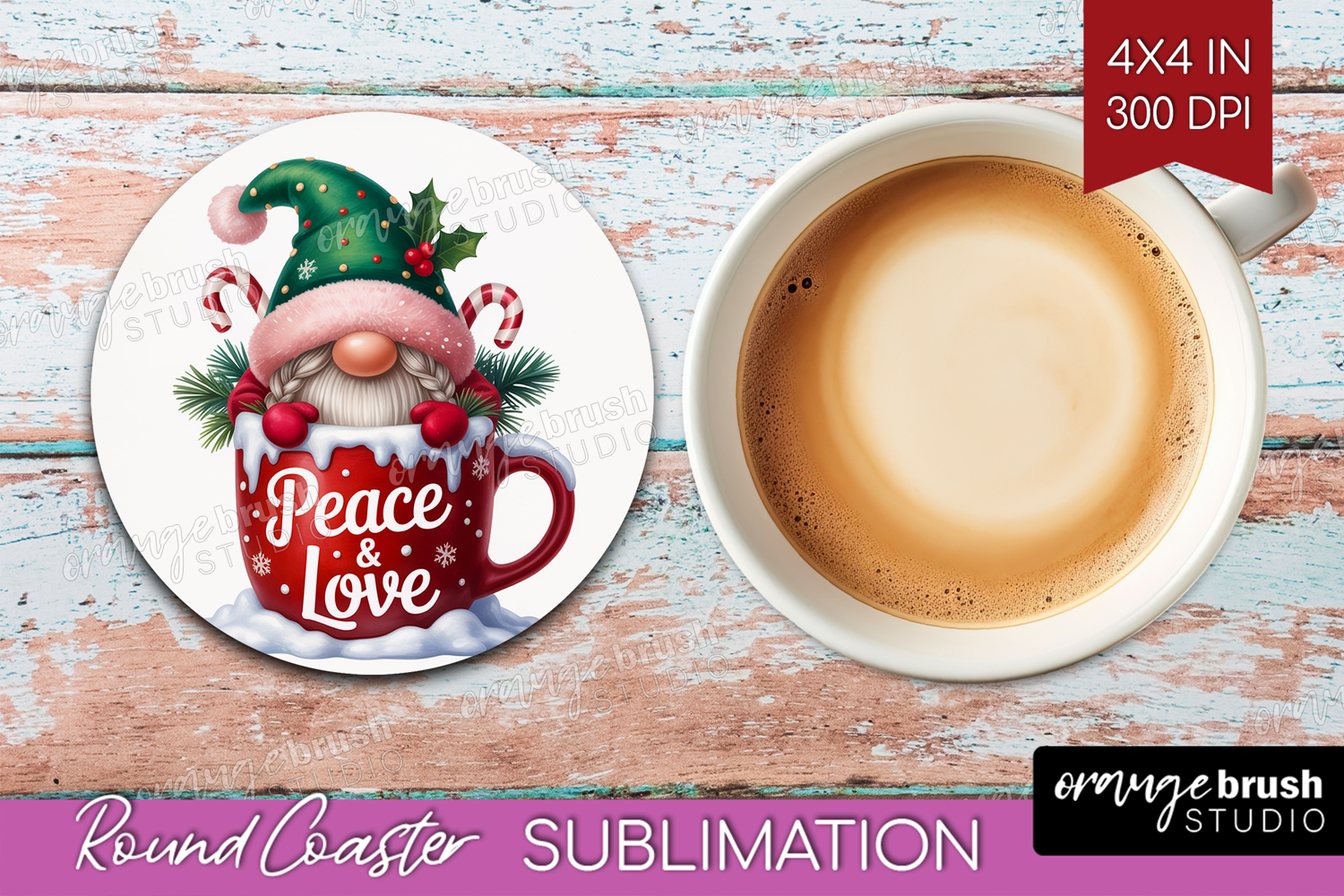 Christmas Gnome Round Coaster - Cute Gnome Coaster PNG