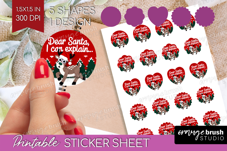 Funny Deer Xmas Round Sticker Christmas Printable Sticker example image 1