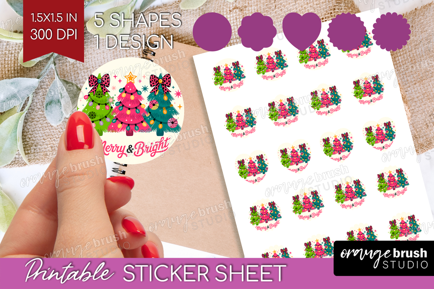 Similar Design Products to Merry & Bright Xmas Round Sticker Christmas Printable Sheet