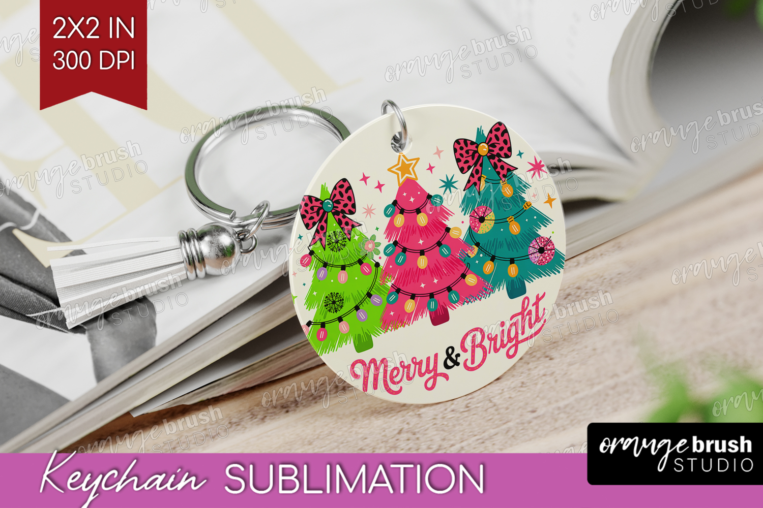 Merry & Bright Xmas Keychain PNG Christmas Keychain example image 1