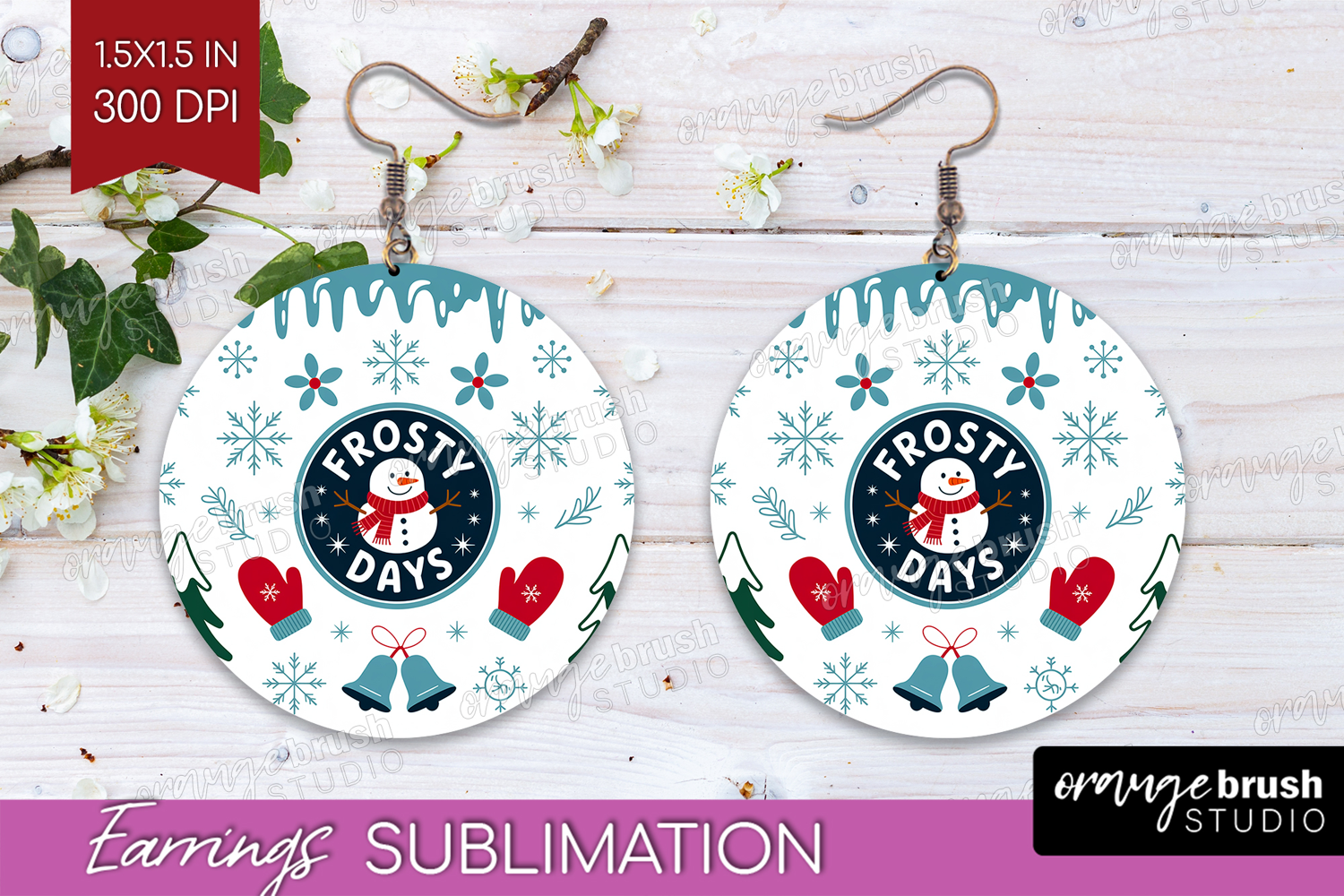 Frosty Days Xmas Round Earrings Christmas PNG Sublimation example image 1