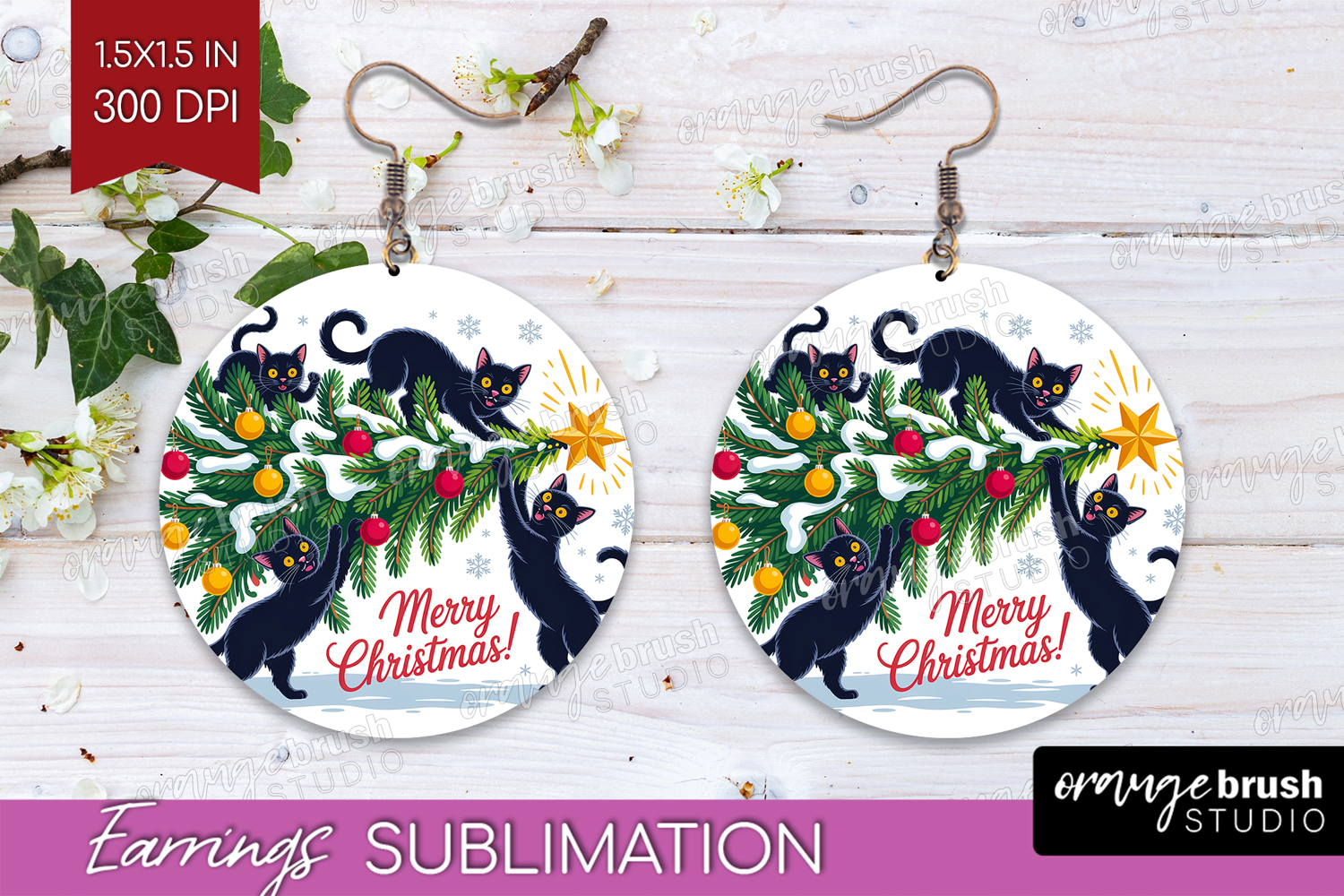 Similar Design Products to Funny Cats Xmas Round Earrings Christmas PNG Sublimation