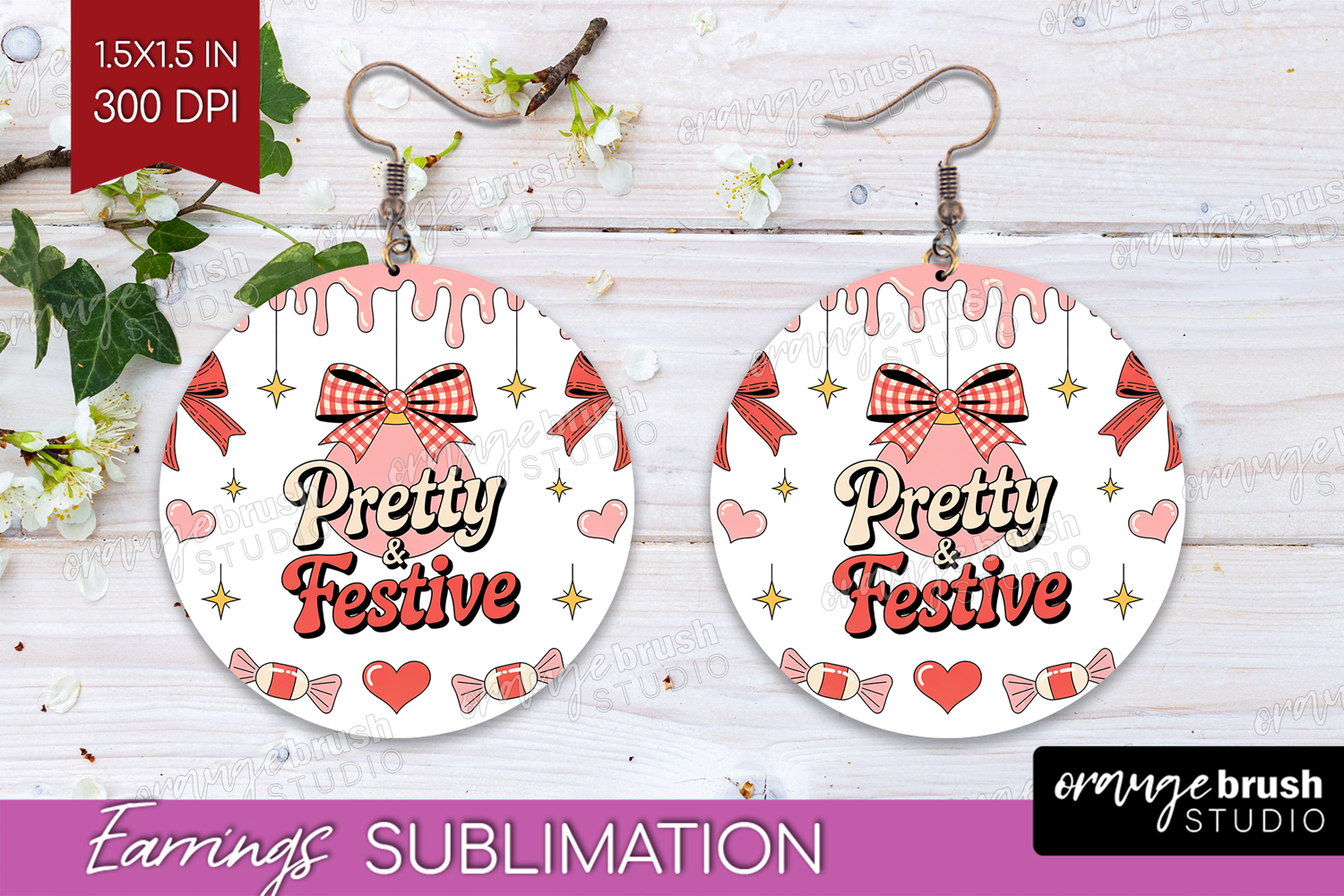 Pretty & Festive Xmas Round Earrings Christmas PNG example image 1