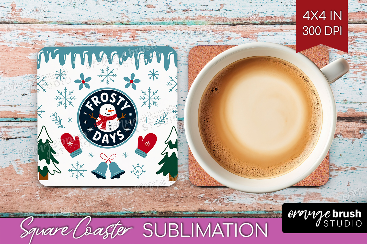 Frosty Days Xmas Square Coaster Christmas Coaster PNG example image 1