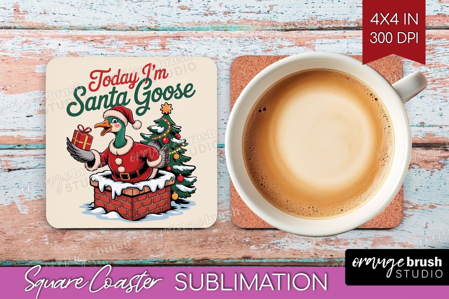 Santa Goose Xmas Square Coaster Christmas Coaster PNG example image 1