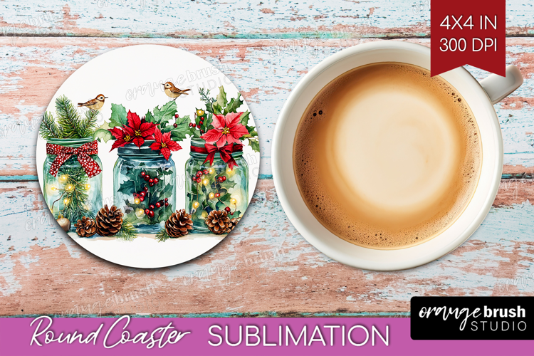 Christmas Jars Xmas Round Coaster Christmas Coaster PNG example image 1