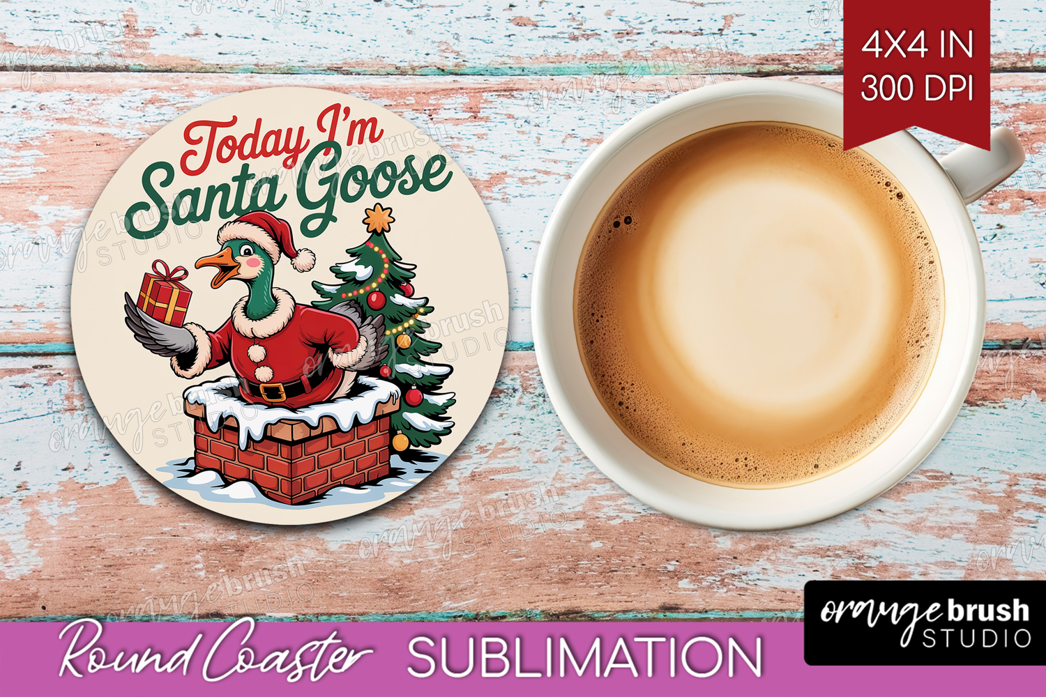 Santa Goose Xmas Round Coaster Christmas Coaster PNG example image 1