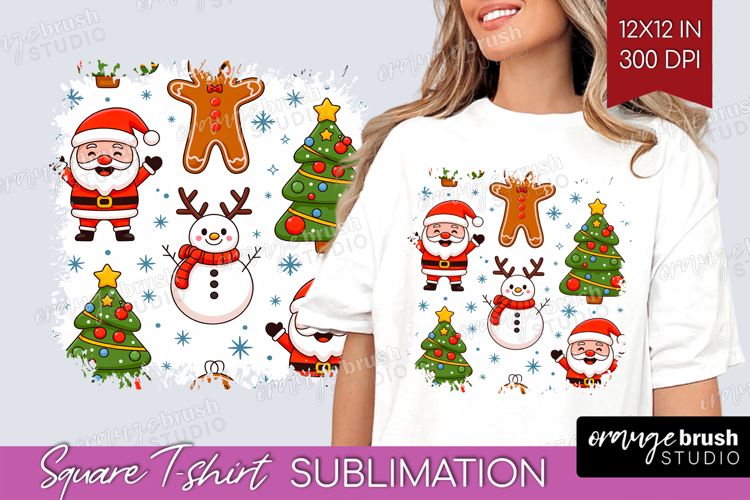 Cute Santa Xmas Square Tshirt Background Christmas PNG example image 1