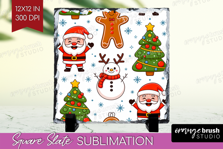 Cute Santa Xmas Slate PNG Christmas Square Slate Sublimation example image 1