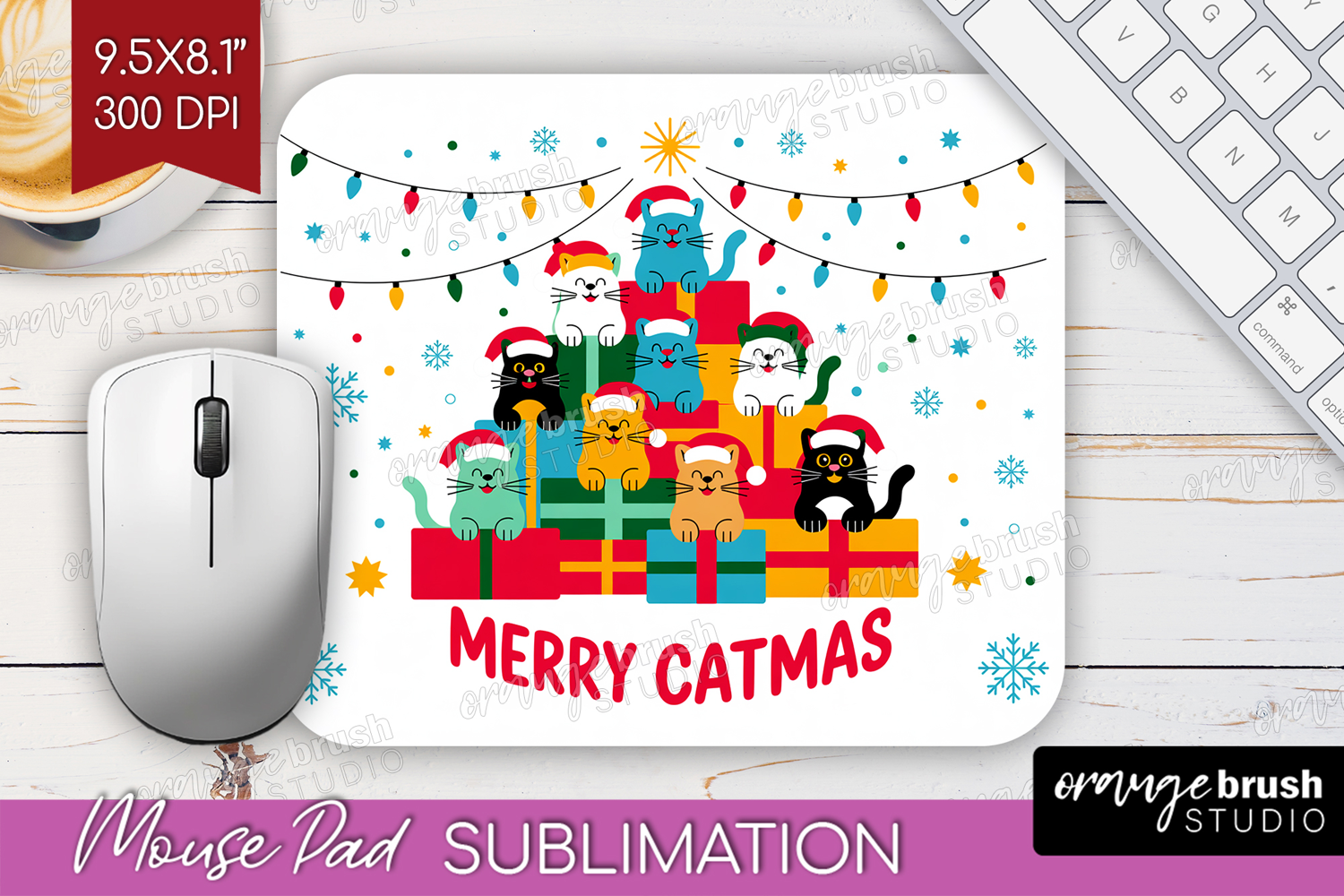 Merry Catmas Xmas Mouse Pad Sublimation Christmas Mousepad example image 1
