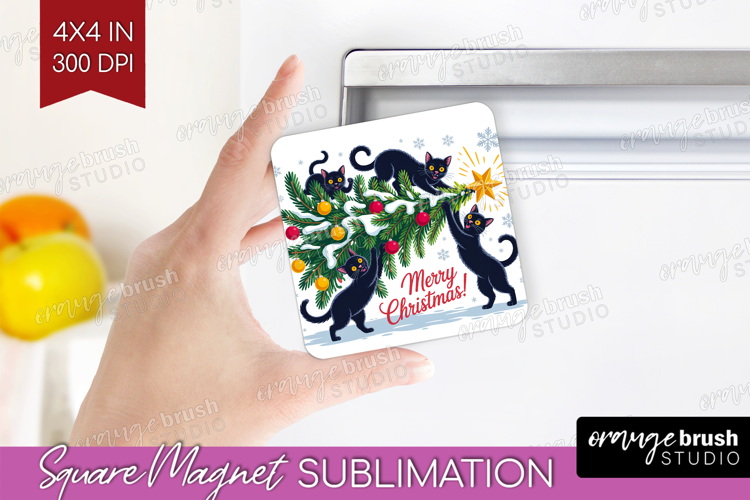 Funny Cats Xmas Magnet Sublimation Christmas Square Magnet example image 1