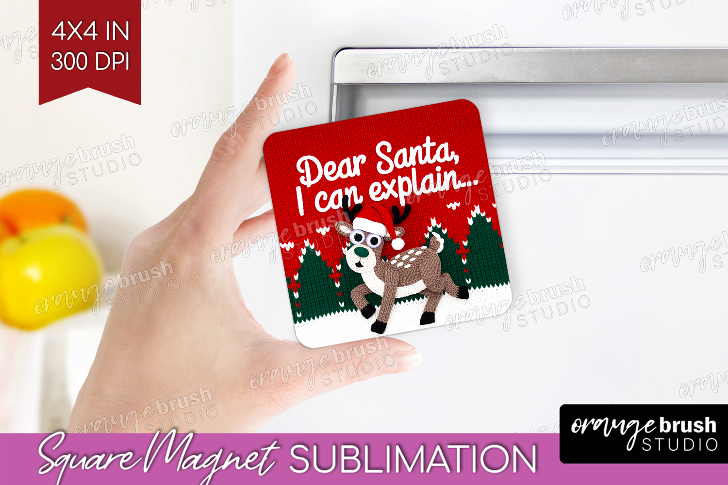 Funny Deer Xmas Magnet Sublimation Christmas Square Magnet example image 1