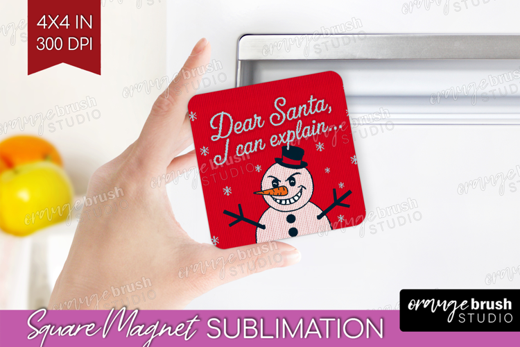 Funny Snowman Xmas Magnet Sublimation Christmas Square PNG example image 1