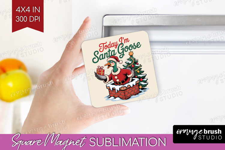 Santa Goose Xmas Magnet Sublimation Christmas Square Magnet example image 1