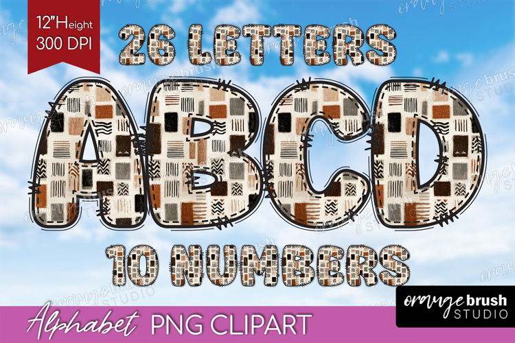 Boho Doodle Alphabet Clipart - Modern Texture Letters PNG