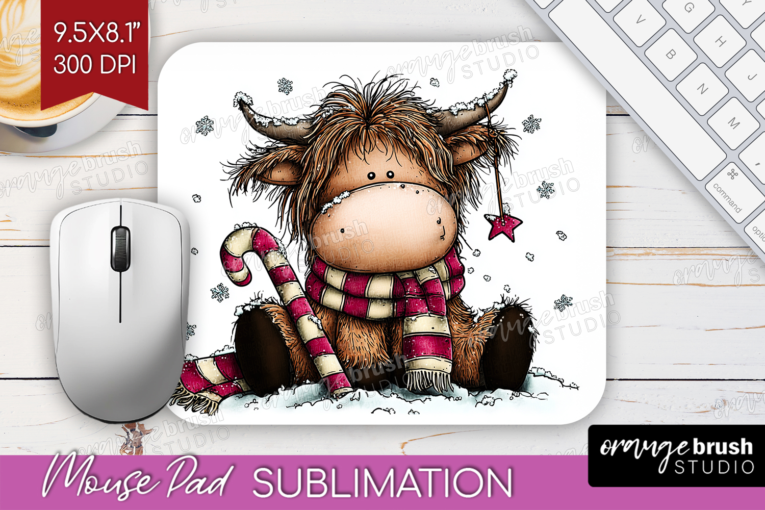 Highland Cow Mouse Pad Sublimation - Whimsical Christmas PNG example image 1