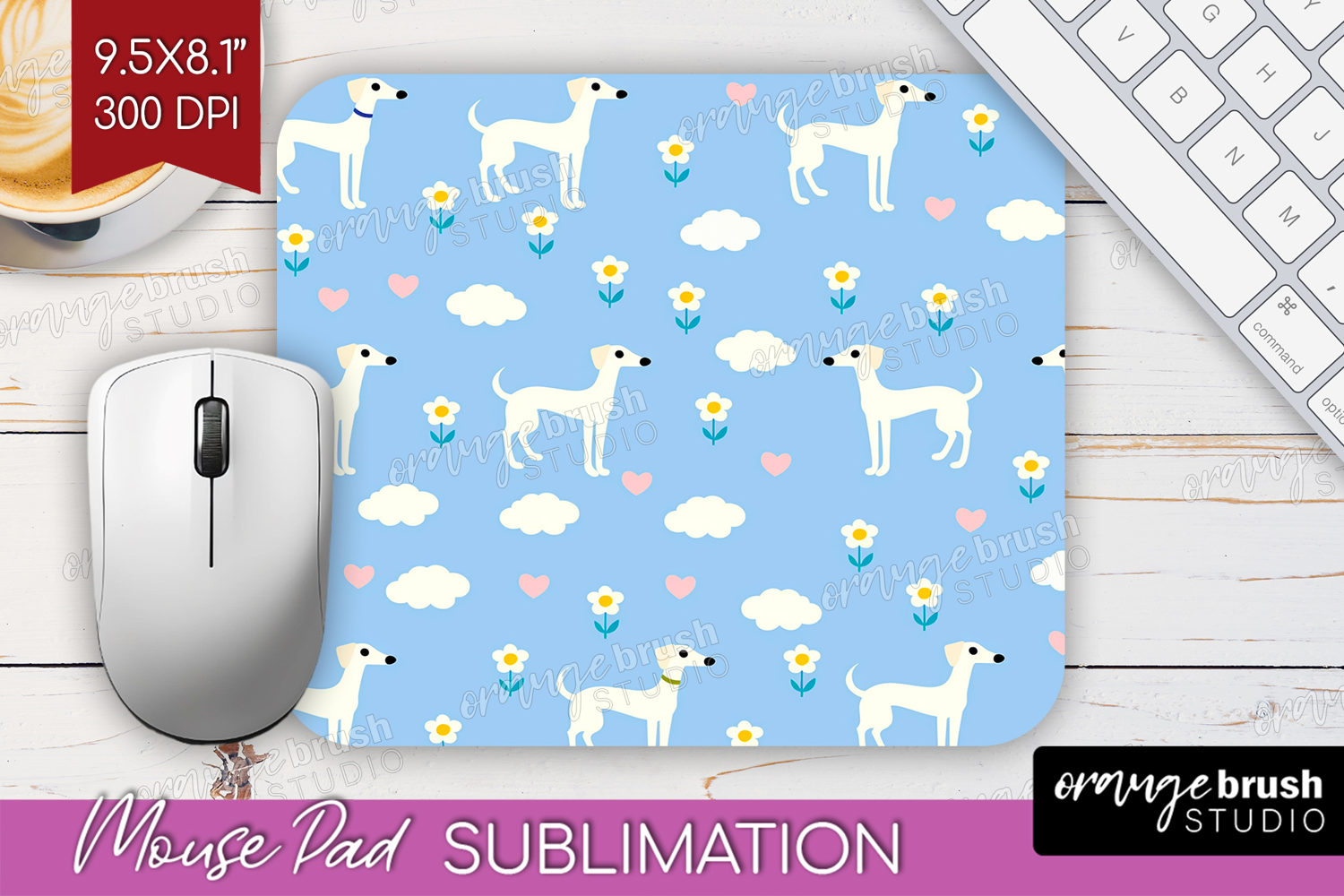 Greyhound Dog Mouse Pad Sublimation Cute Chibi Puppy PNG example image 1