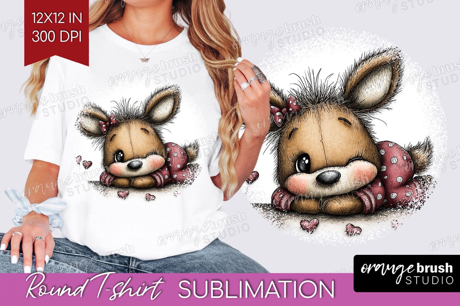 Deer Valentine Round Tshirt Background Whimsical Animal PNG example image 1