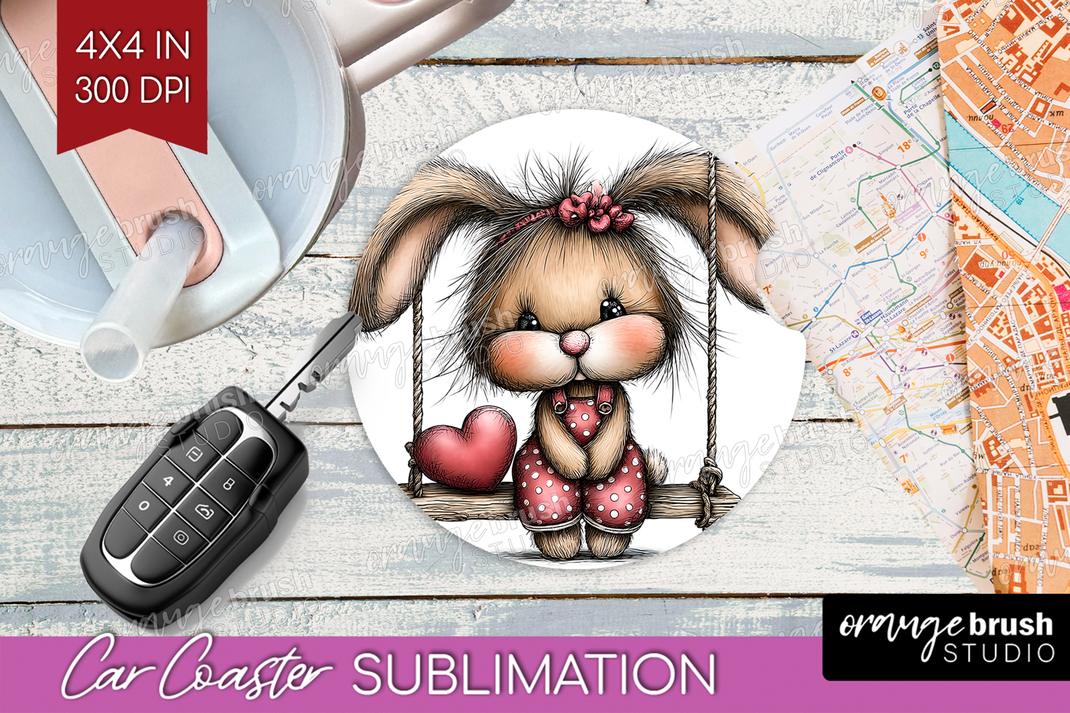 Rabbit Valentine Car Coaster Whimsical Animal Coaster PNG example image 1