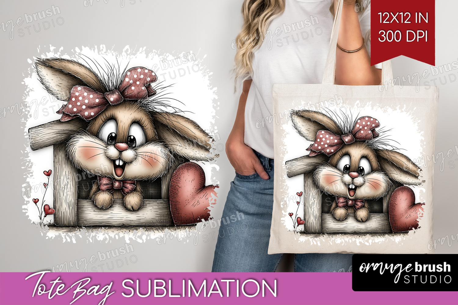 Bunny Valentine Tote Bag Whimsical Animal Tote Bag PNG example image 1