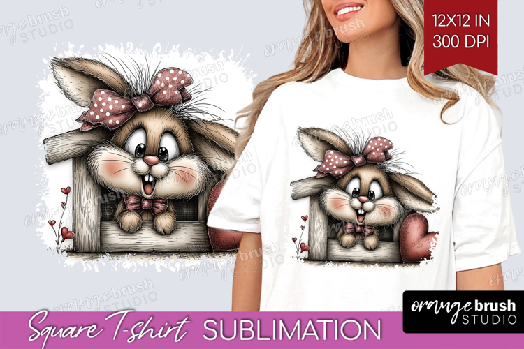 Bunny Valentine Square Tshirt Background Whimsical Animal example image 1