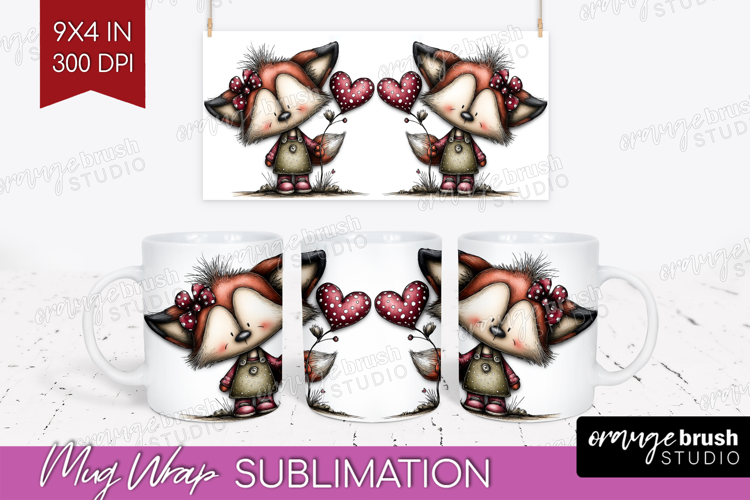 Fox Valentine Mug Wrap Whimsical Animal Mug PNG Sublimation
