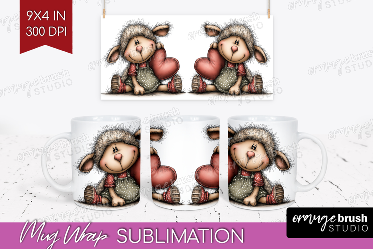 Lamb Valentine Mug Wrap Whimsical Animal Mug PNG Sublimation