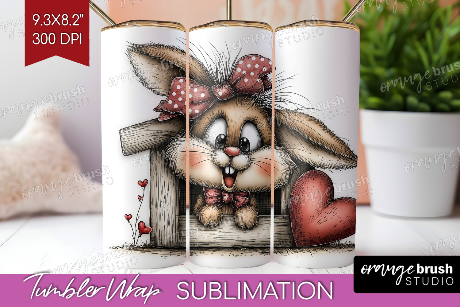 Bunny Valentine Tumbler Wrap Whimsical Animal Tumbler PNG example image 1