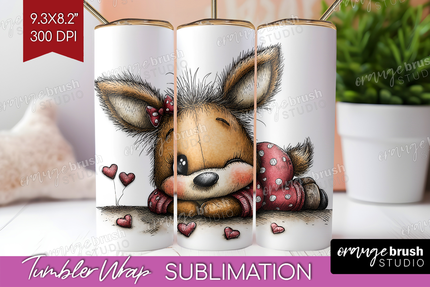 Deer Valentine Tumbler Wrap Whimsical Animal Tumbler PNG