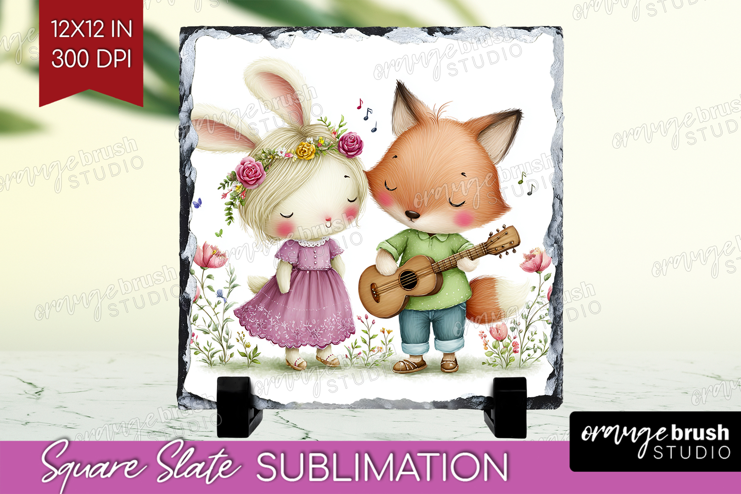 Couple Animals Slate PNG - Valentines Day Square Slate