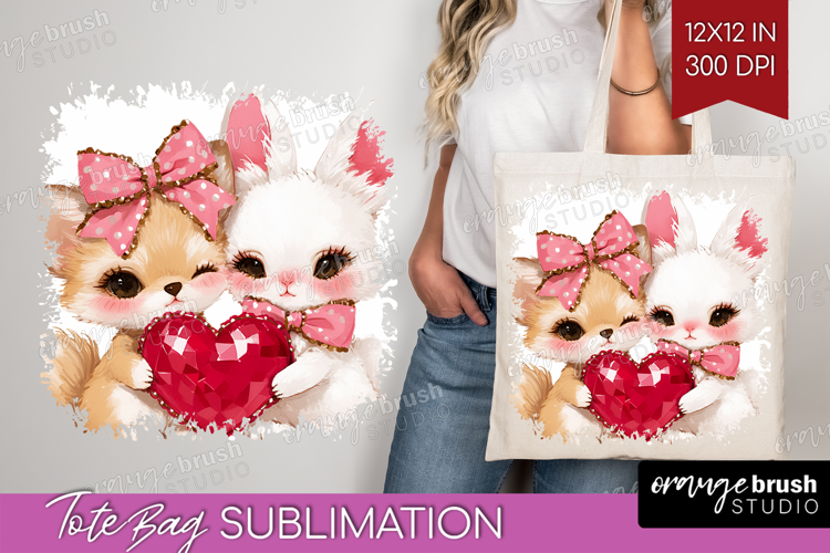 Valentines Day Tote Bag Sublimation Cute Animal Tote Bag Valentines Day Tote Bag Valentines Day Tote Bag Png Cute Animal Tote Bag Sublimation Fox And Bunny Cute Animal Tote Bag Png Pink Valentine Tote Bag Pink Valentine Tote Bag Sublimation Pink Valentine Tote Bag Png